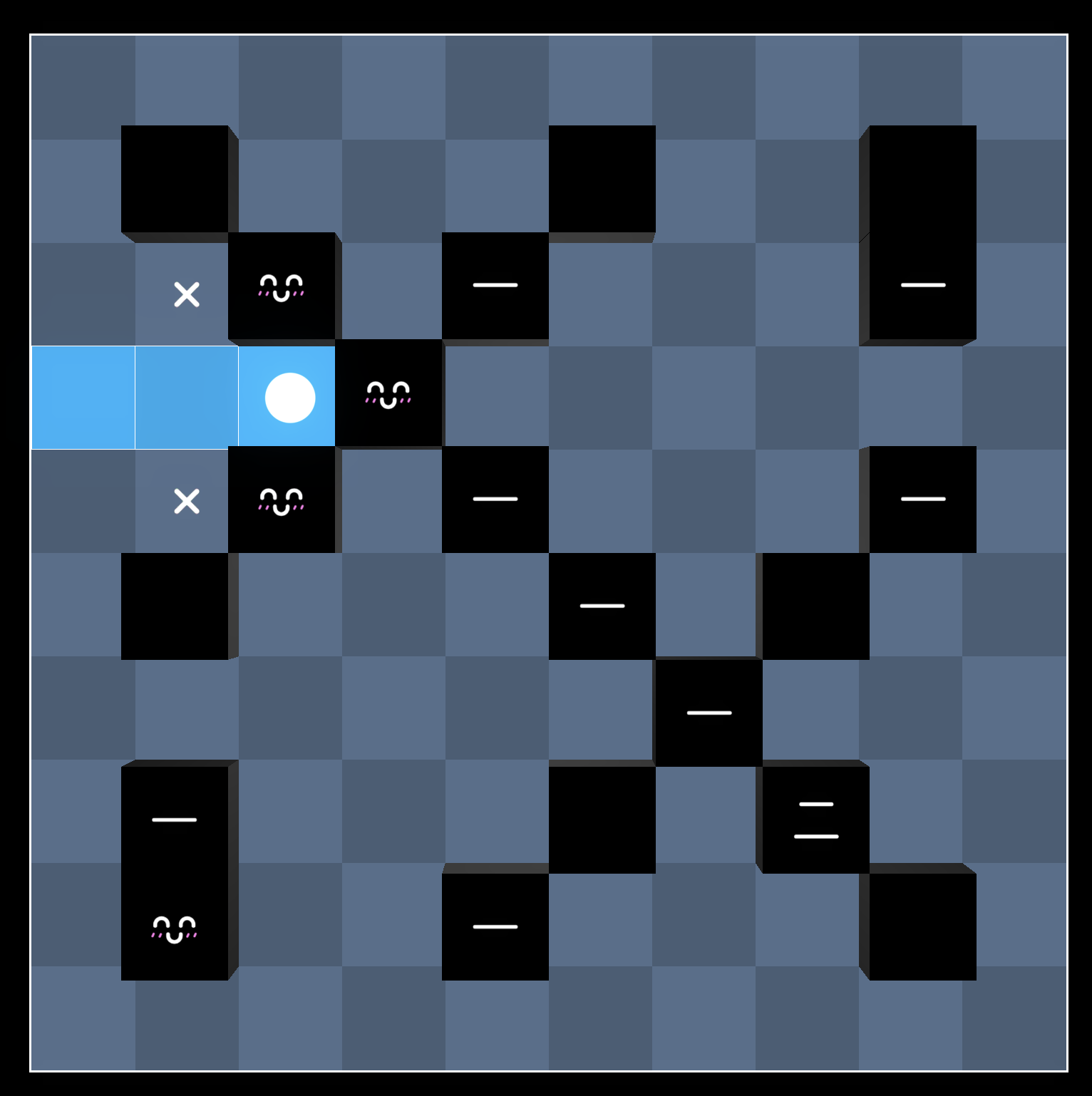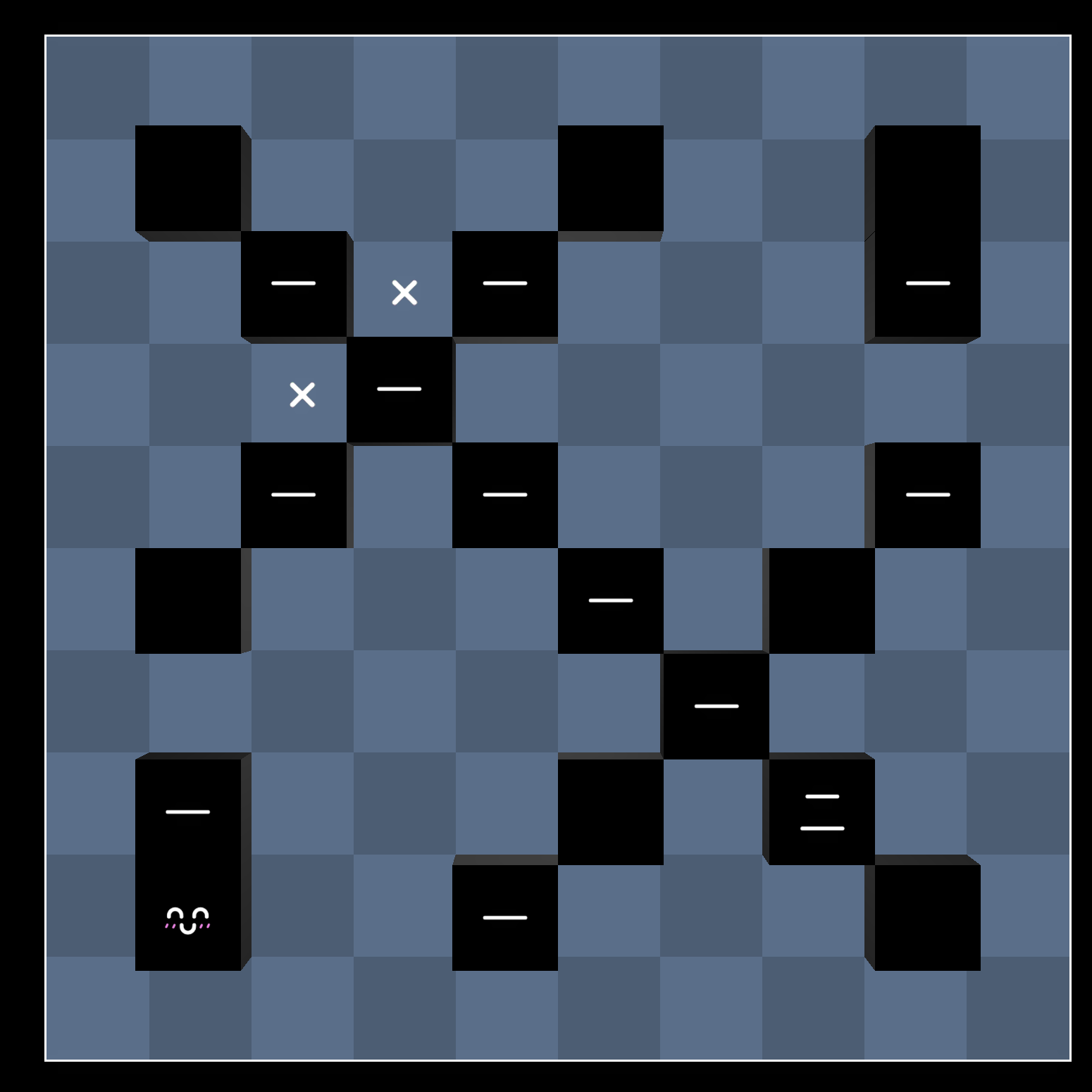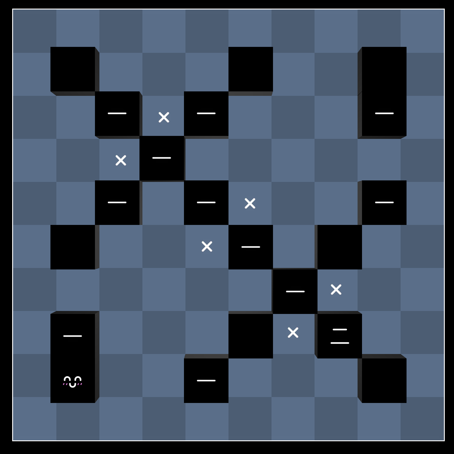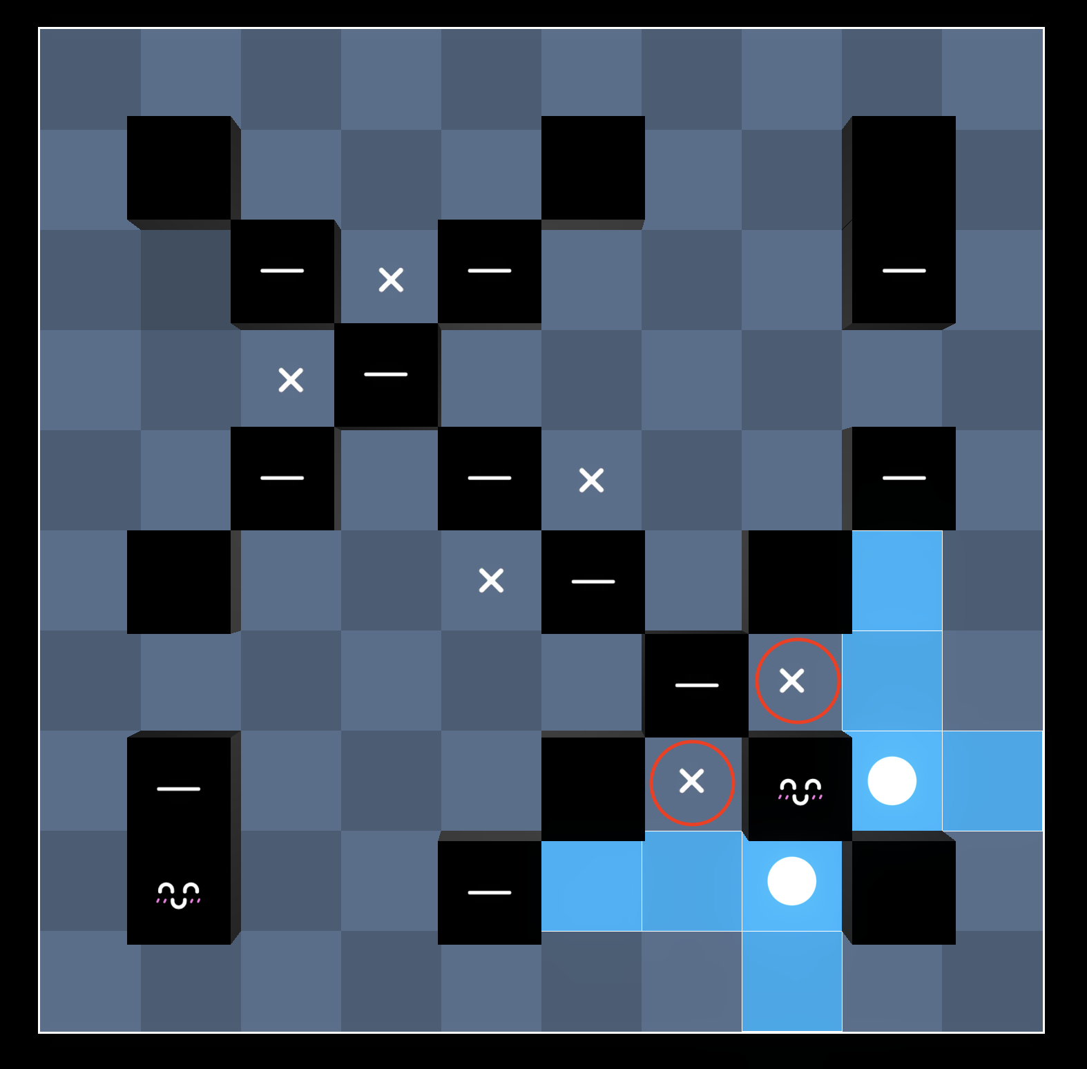 First, note that we cannot place the light here, otherwise it’s impossible to light both squares marked with an X: