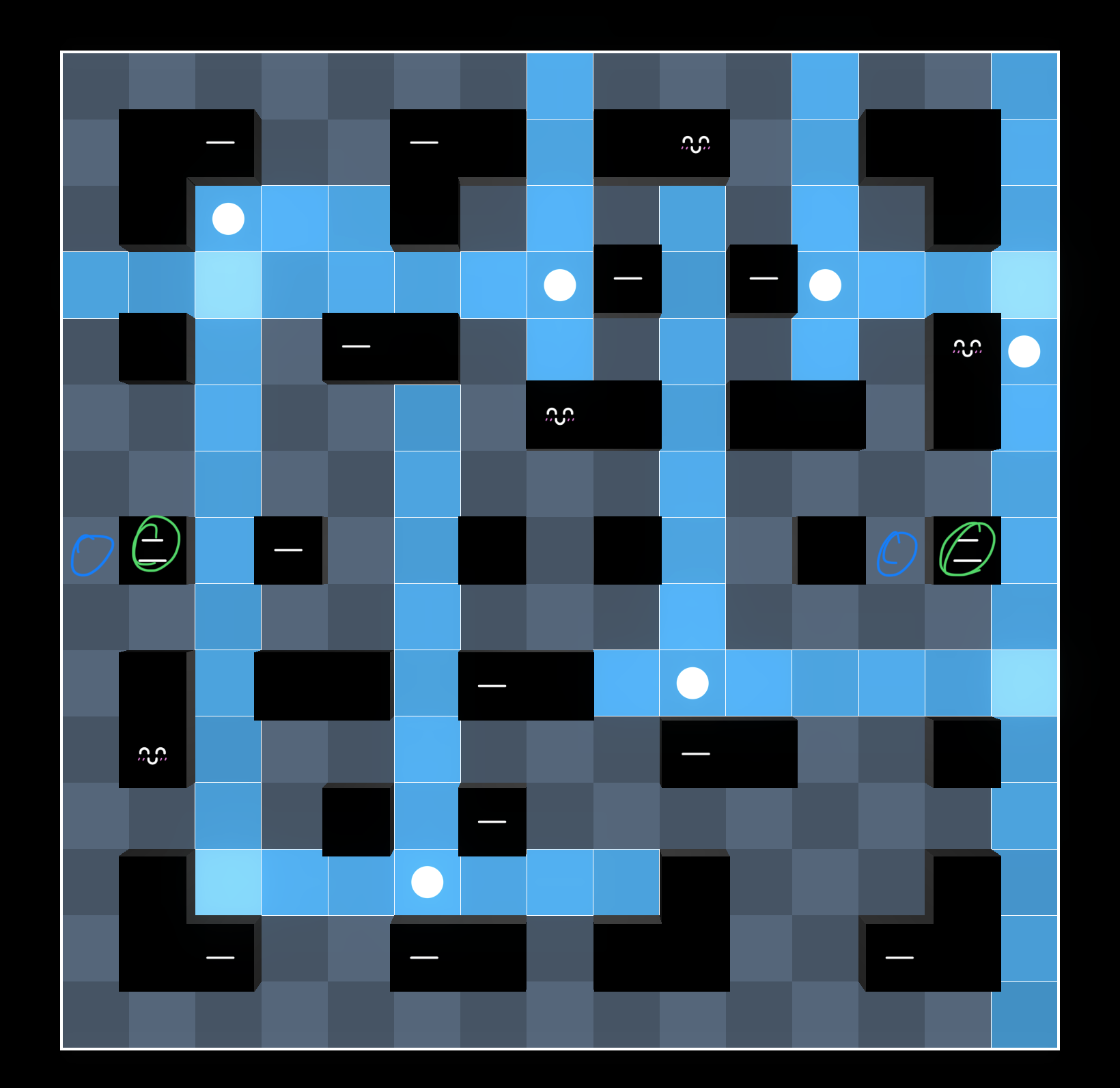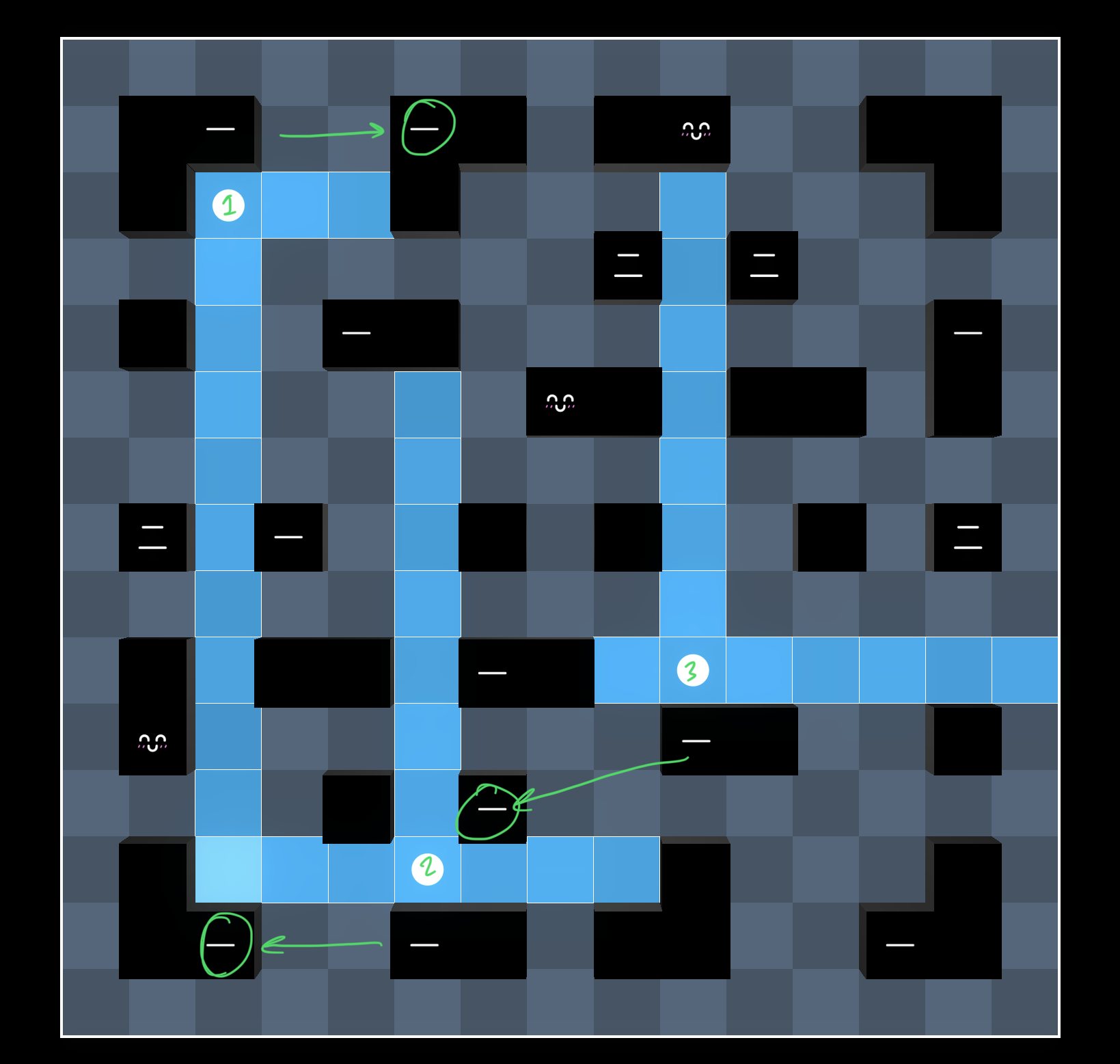 from here, the two green 2s will suffocate each other unless lights are placed in both blue squares.