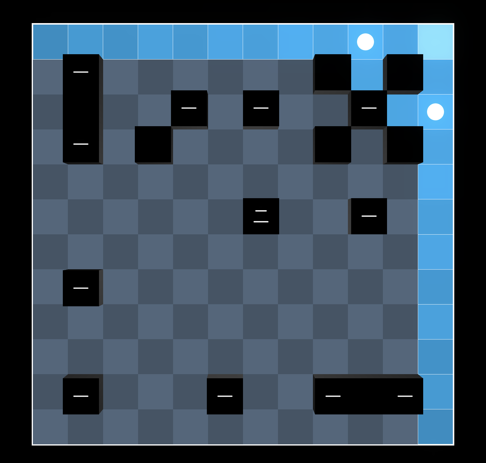 if neither of the blue squares are lit, then the green 1 will be suffocated.