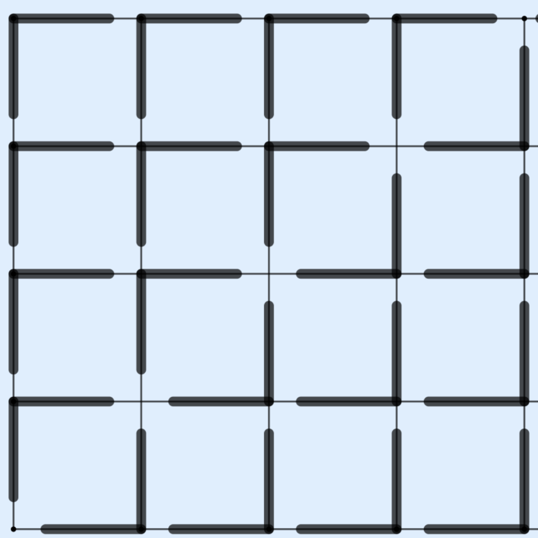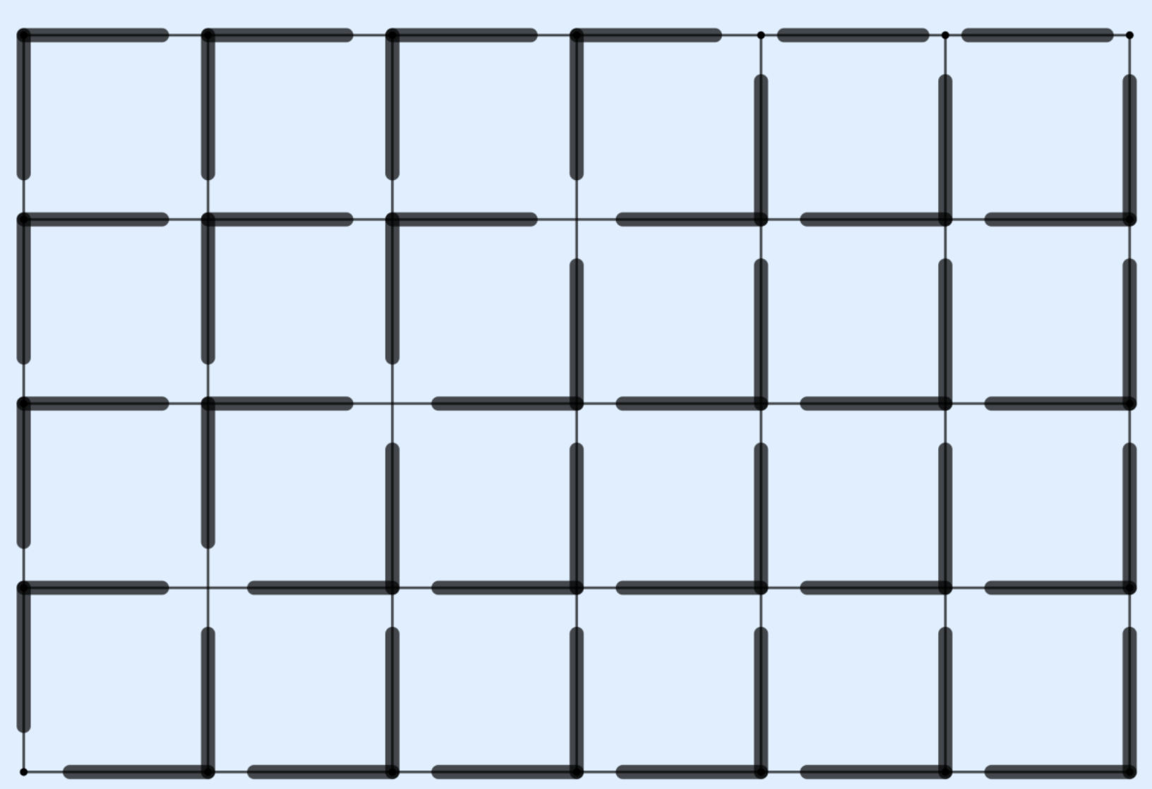 - because each L-shape removes one horizontal and one vertical edge, it must hold that