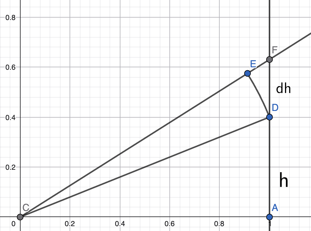 Our goal is to find in terms of . Let ; then, by Pythagorean theorem, we know that . We also know that is just a very small arc, so its length is .