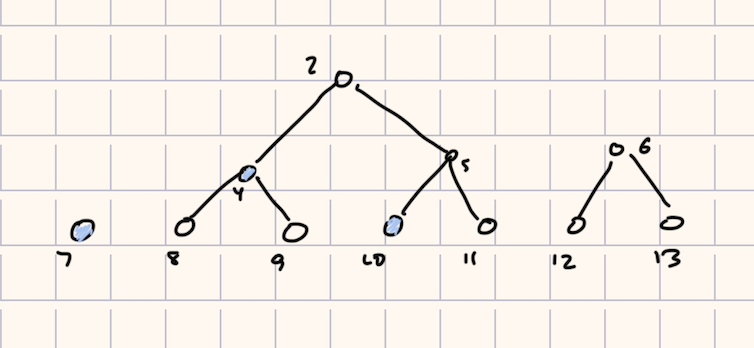 - If a node has an odd index and its corresponding range can be doubled to the left, its parent will represent that doubled range.