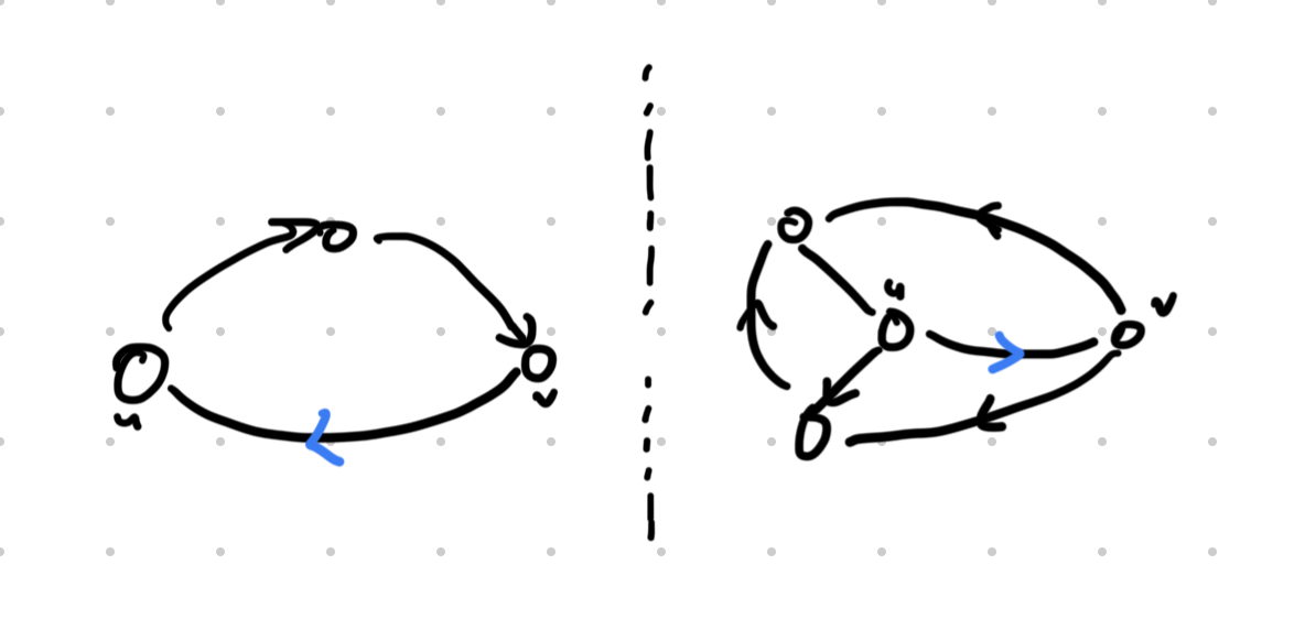 Proof of claim. Consider the graph (i.e. with edge removed). We wish to show that in this graph, there always exists a path either from or from . If the former is true, we can direct this edge from ; otherwise, we can direct this edge from .