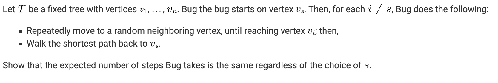 What about the first step? Let be the expected time to leave subtree given that you start at node .