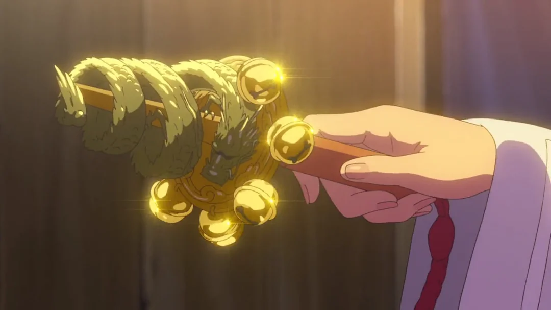 Grandma notes that the weaving process has a magical aspect, through which one can infuse their own soul and voice into the cords. Thus, Mitsuha’s red cord contains part of her, and when worn by Taki, forges a bond between the two that transcends space and time.